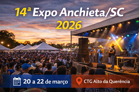 A Expo Anchieta 2026 está programada para ser realizada de 20 a 22 de março de 2026.