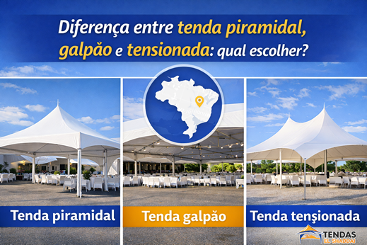 Por isso, entender a diferença entre tenda piramidal, tenda galpão e tenda tensionada evita erros e garante mais segurança e conforto.